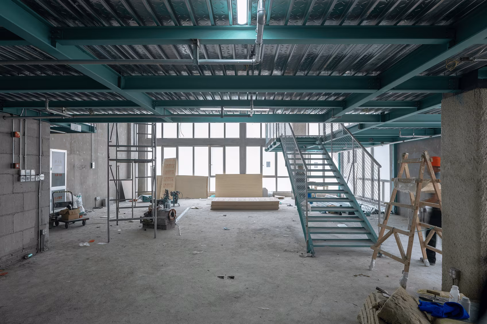 Within an existing space located on 3rd and 4th floor of Columbia Circle, building 10#, we added a new mezzanine structure which transformed the space into a creative environment. A new featured staircase has been designed as the central piece of the project, it connects the 3rd floor, 4th floor and opens to the rooftop on 5th floor with a glass box.